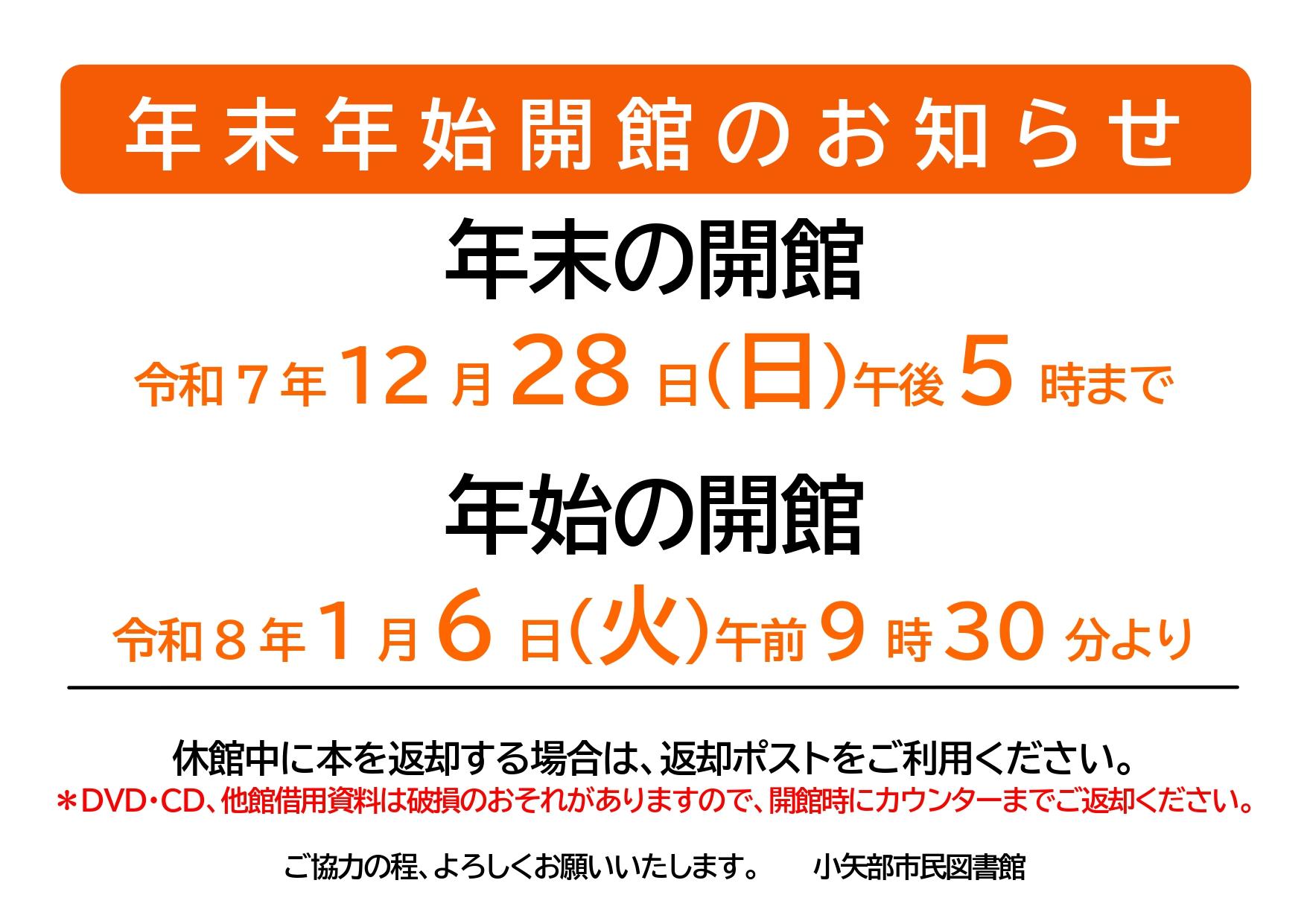 年末年始の開館のお知らせ